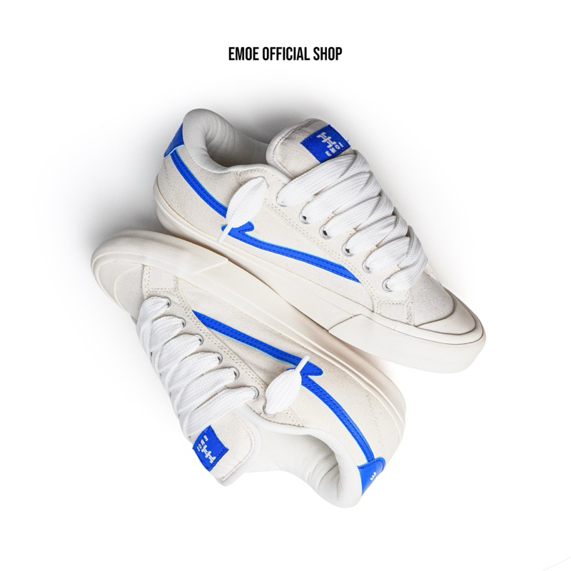 BUBBLE- WHITE - BLUE Sneakers Pria Wanita Sepatu Kasual Putih Biru Elegan Shoes Karet Casual