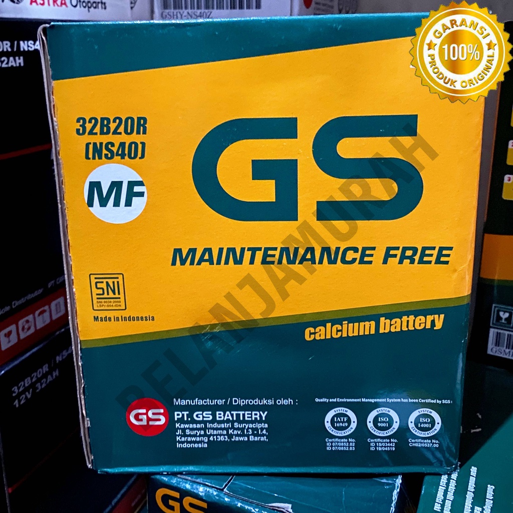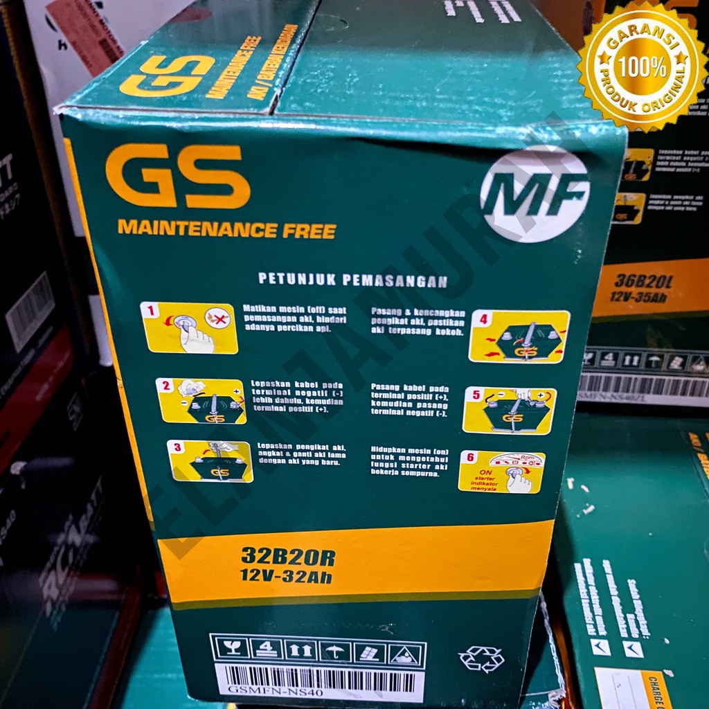 Aki Mobil GS MF (Maintenance Free) NS40 32Ah / 12V 100 PERSEN Asli Carry, Futura, Avanza, Xenia, Rush, Terios, APV, Mega Car