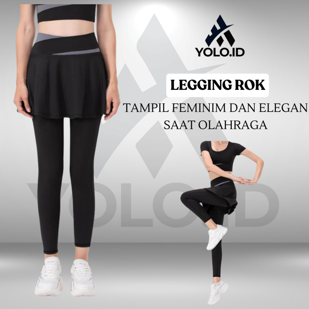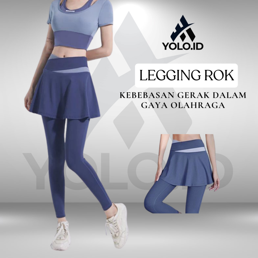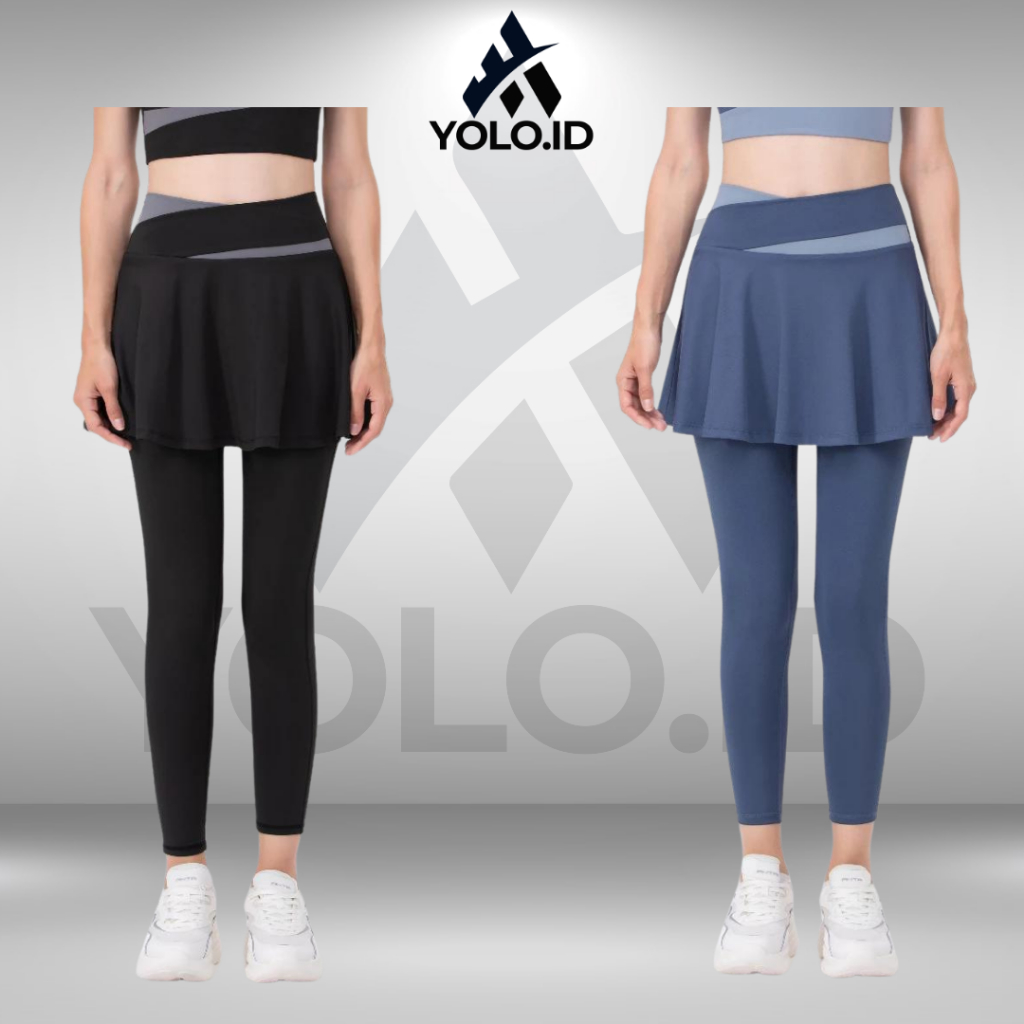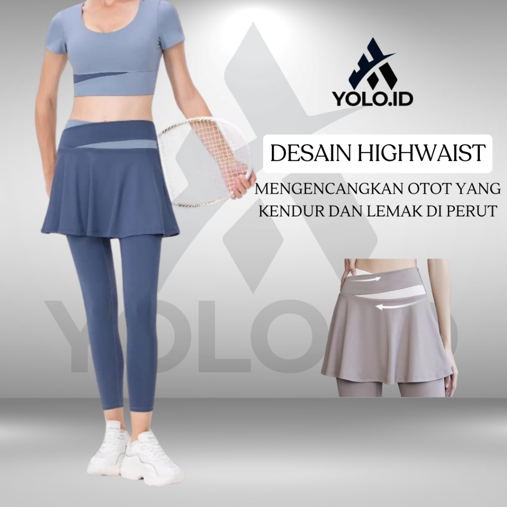 Legging Celana Olahraga Wanita Rok Celana skirt High Waist Polos Yoga Dua lapis gym tennis Running