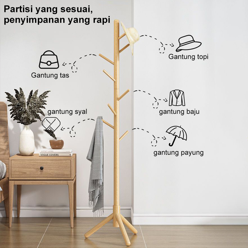 GANTUNGAN BAJU KAYU RAK MANTEL LANTAI GANTUNGAN BAJU KAMAR TIDUR GANTUNG VERTIKAL SEDERHANA RAK TAS