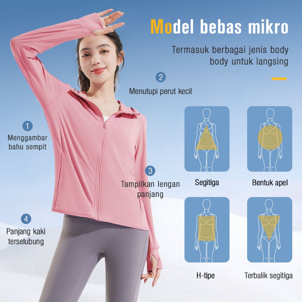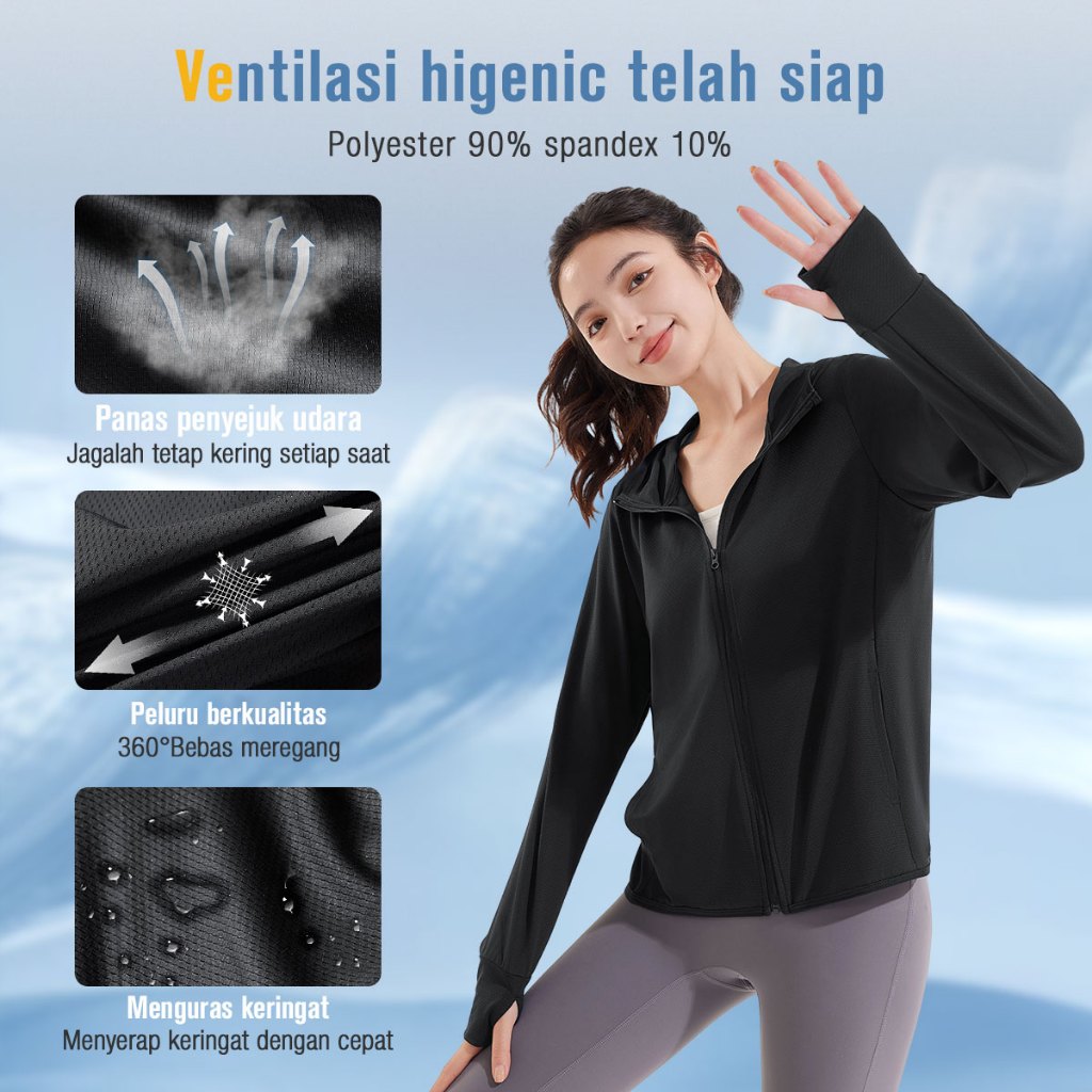 KKTOP Jaket Wanita Anti UV UPF50+ • Jaket Dingin Tipis Cepat Kering untuk Outdoor & Gym (J001)