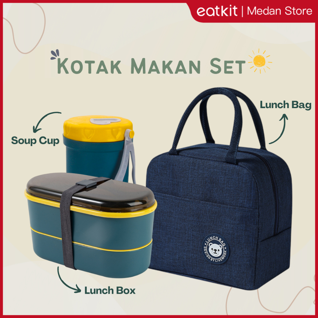 WASMAN COLLECTION Eatkit 3in1 Lunch Box Set Kotak Makan Siang Aman untuk microwave Kotak Bekal+ Tas Thermal Lunch Bag
