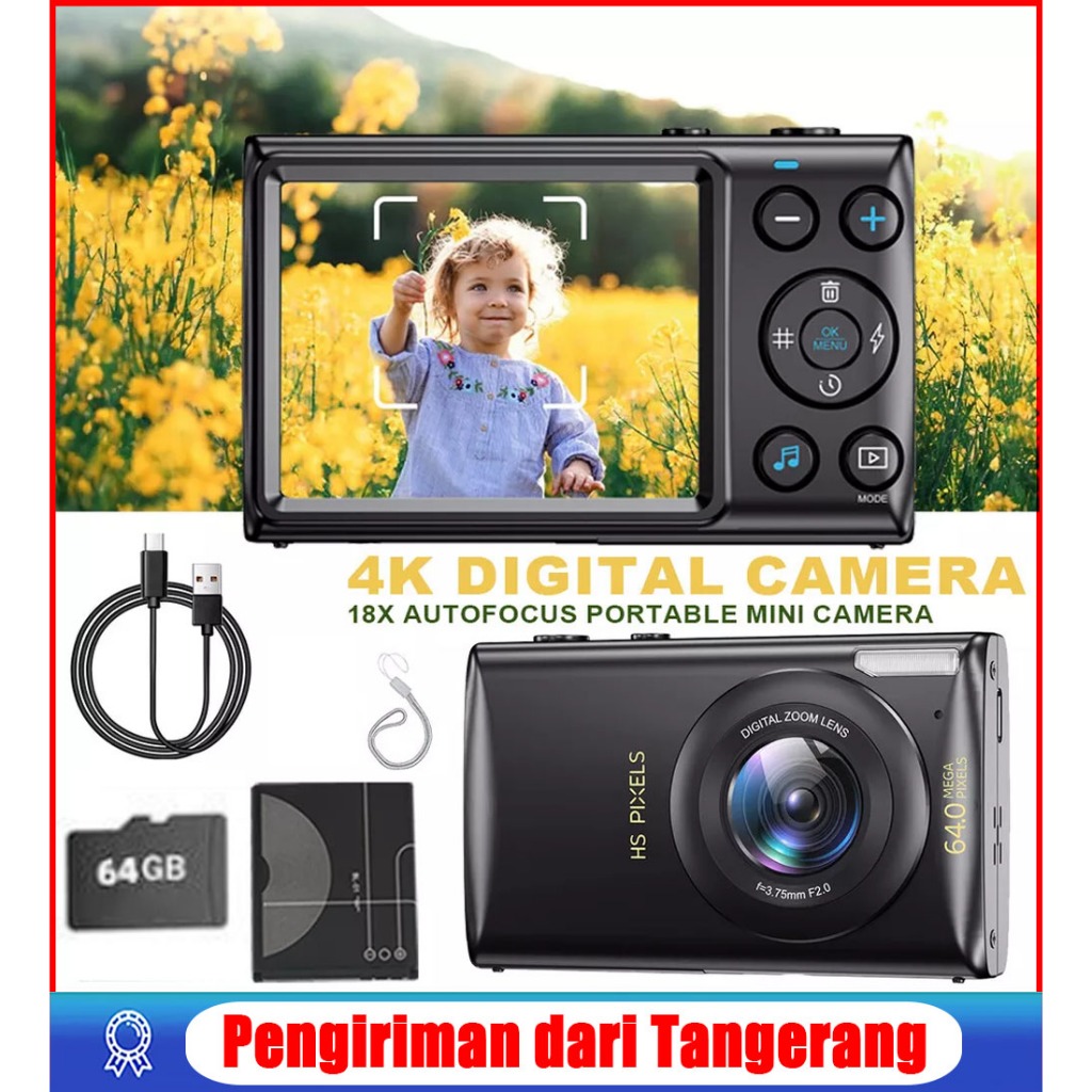 【Dengan 64GB Card】TEEKA 64MP Kamera Digital 4K Murah Dengan Zoom 18X Kamera 2.8" screen Dengan Anti Guncangan, Sempurna