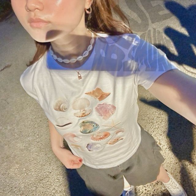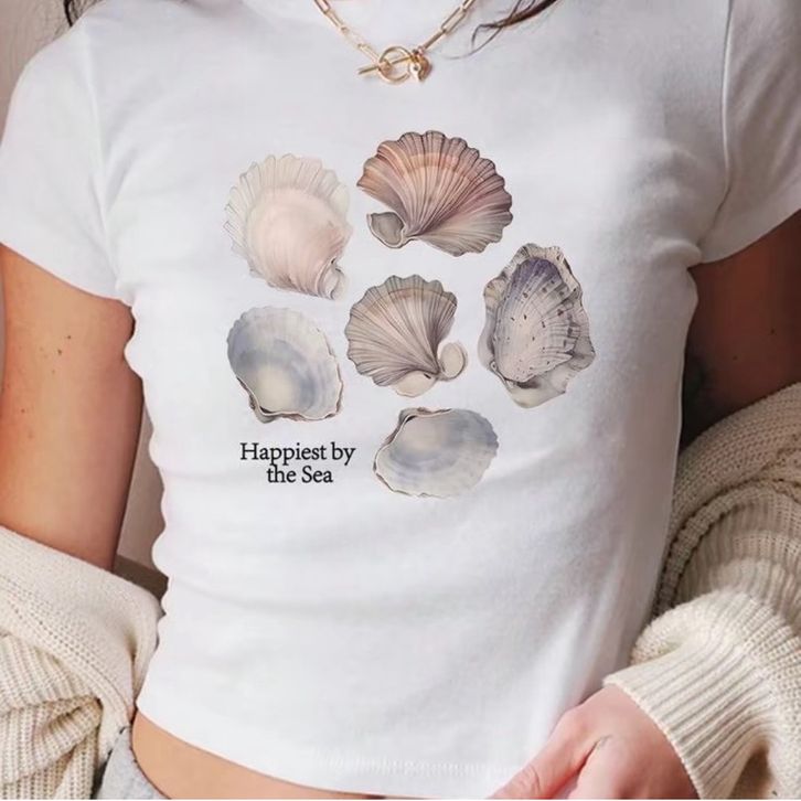 seashell crop top y2k baby tee vintage aesthetic coquette retro 2000 tee aesthetic vintage downtown indie tope
