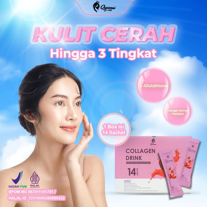 collagen drink Queensi Collagen Drink Strawberry With Collagen Bovine Peptiplus Vitamin C & L-Glutatione | Minuman Kola