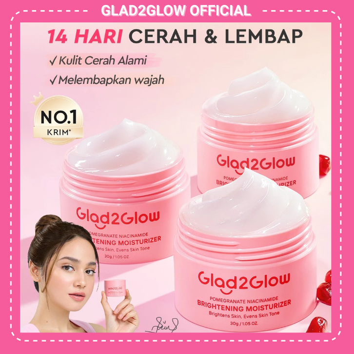 [Mall] Glad 2 Glow Official g2glow Brightening Moisturizer Pomegranate Niacinamide Gel Pelembab Bercahaya Krim Siang