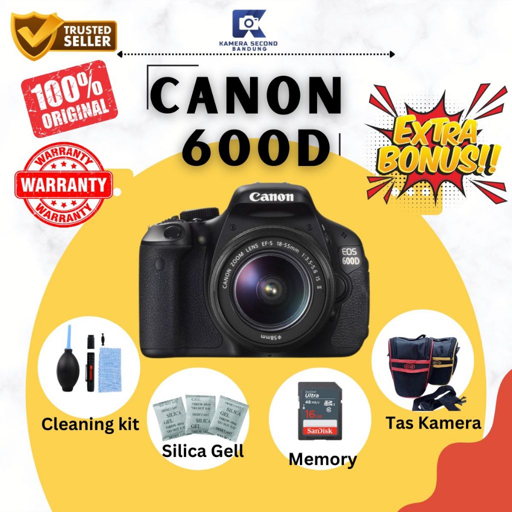 TERLARIS Canon 600D Kit - Layar Flip, Video Full HD DSLR Bekas Siap Pakai & Lengkap!