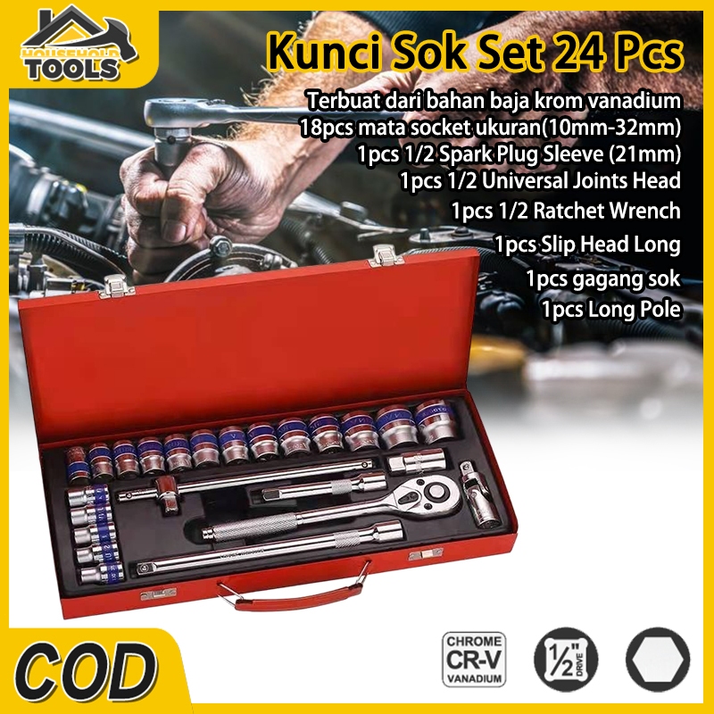 Socket Wrench Pas Socket Set Kunci Socket Set Kunci Socket 1/2 inch Repair Tool 24 pcs Socket Tool Kit