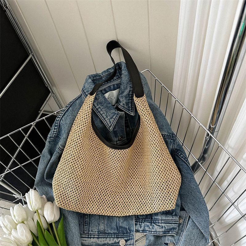 TAS BAHU WANITA TENUNAN TAS JERAMI TAS JINJING TAS PANTAI BALI TOTE BAG SHOULDER BAG STRAW NET BAG