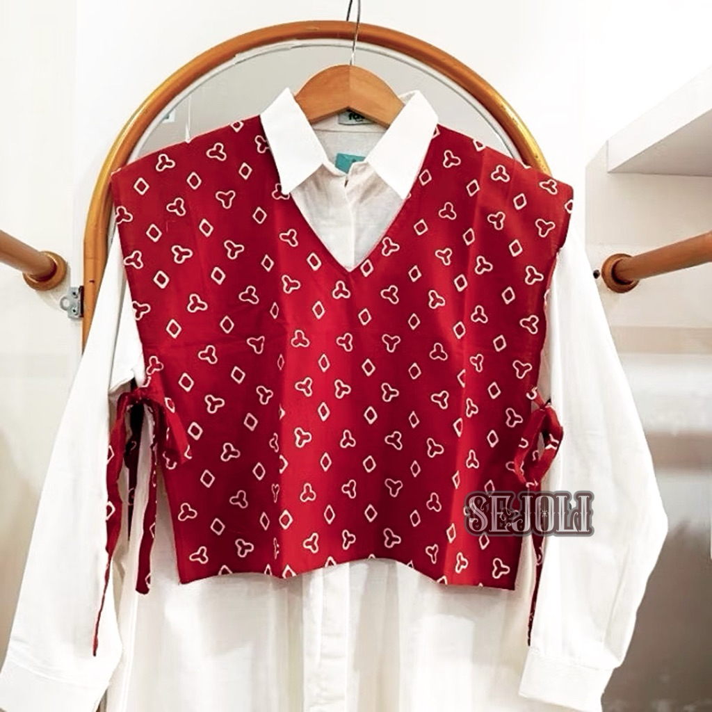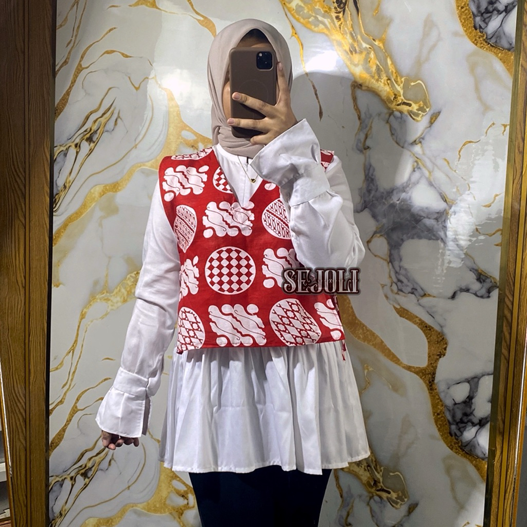 BATIKSEJOLI VEST BATIK MERAH PUTIH ROMPI BATIK KANTOR PREMIUM KEMERDEKAAN