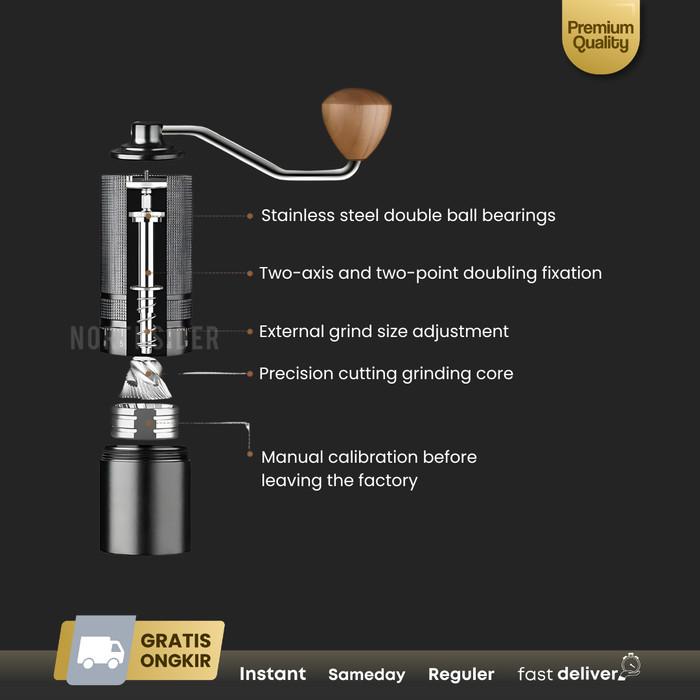 Jinsei Coffee Grinder Kopi Manual Stainless Conical Burr 6 Core Js-G3 - Hitam