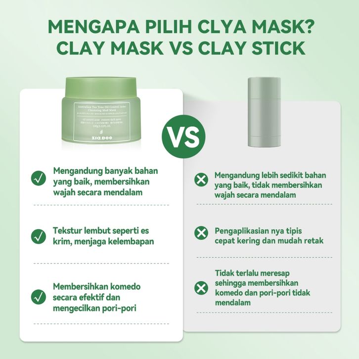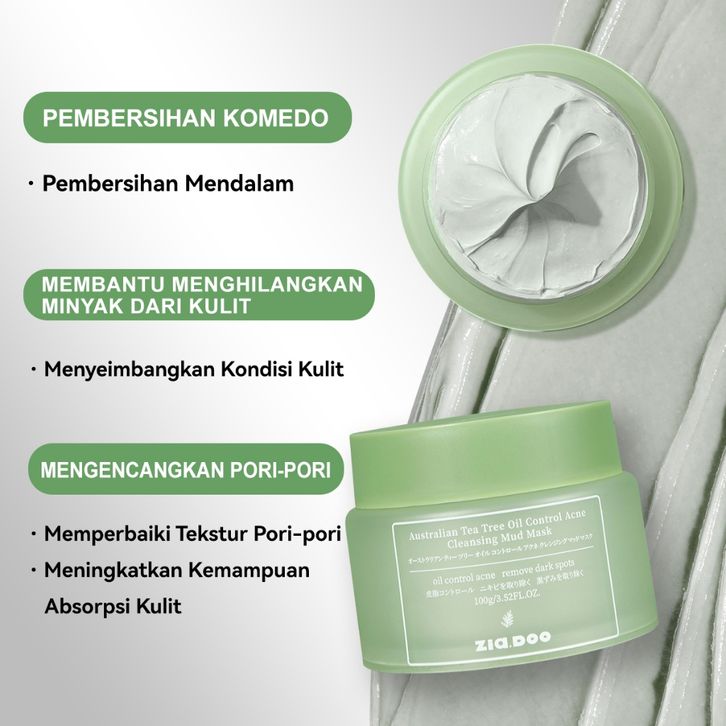 clay mask ZIA.DOO Australian Tea Tree Oil Clay Mask 100ml Masker Jerawat Komedo Kontrol Minyak Eksfoliasi BPOM