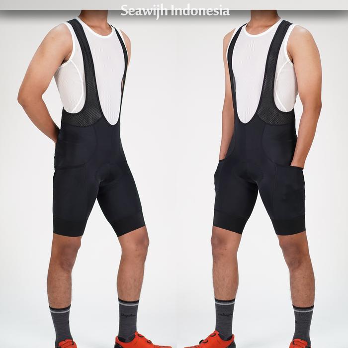 Celana Padding Sepeda Bib Cargo Cheji Pro Race Side Pocket Gravel Cycling Original - Black, S
