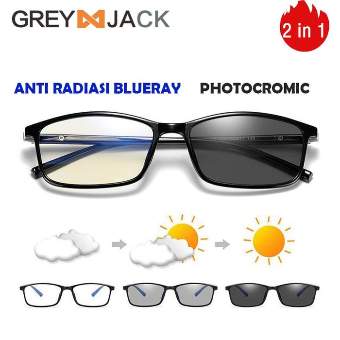 GREY JACK kacamata anti radiasi blueray+photocromic 2IN1 TR90 Model kotak Fashion pria dan wanita 2821