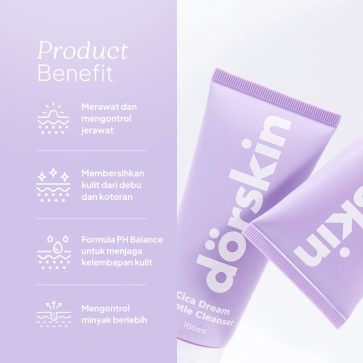 Dorskin Cica Dream Gentle Cleanser - Sabun Cuci Muka Kulit Jerawat & Bruntusan Low pH Face Wash Centella Asiatica facia