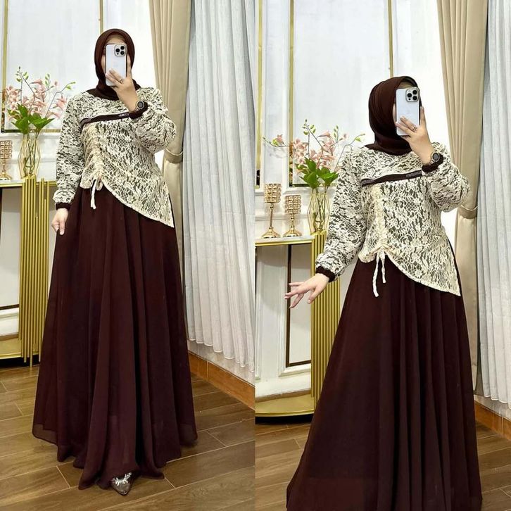 aurelia dress ceruty babydoll mix brukat aplikasi payet swarovski gamis pesta mewah elegant