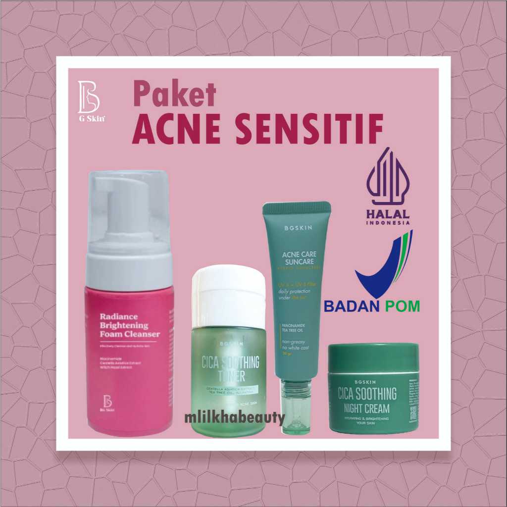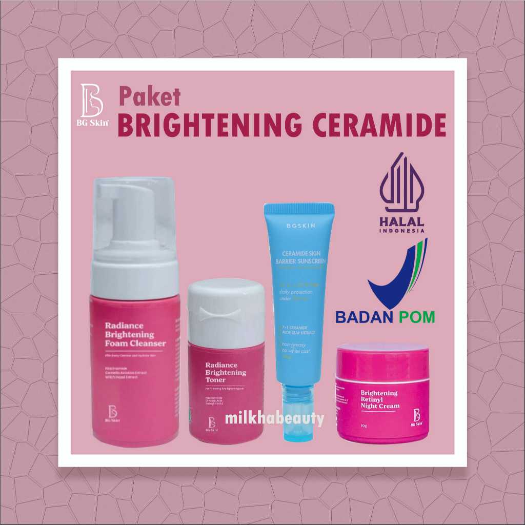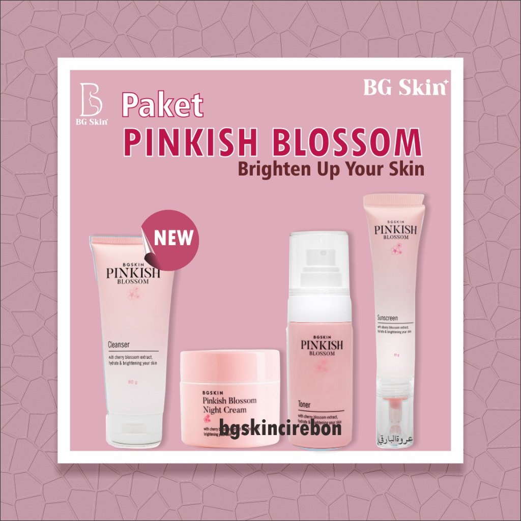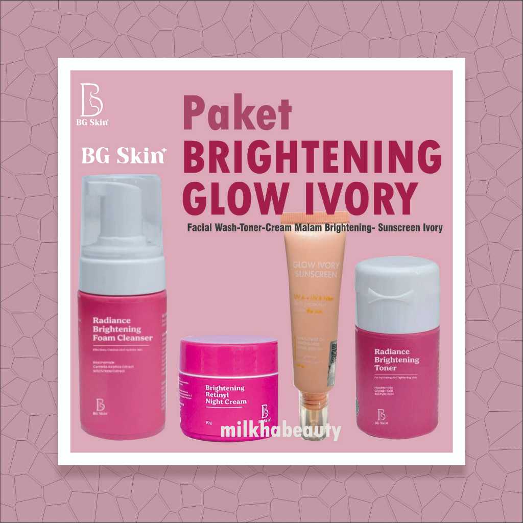 PAKET SKINCARE WANITA GLOWING BG SKIN LUXURY BRIGHTENING FACIAL WASH NIGHT CREAM SERUM RETINOL ACNE SUNSCREEN PINK BG