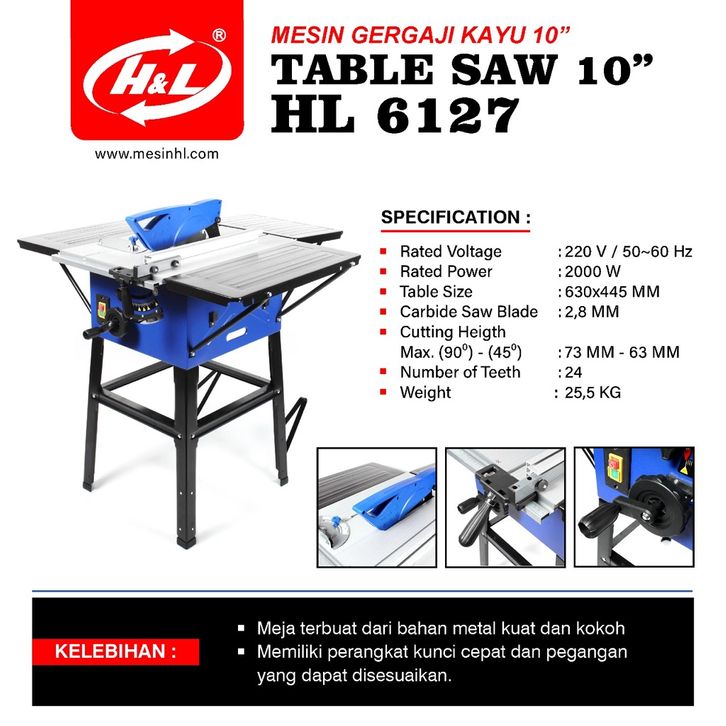 H&L Mesin Table Saw 10 Inch / Meja Potong Kayu 10' + Mata Circular Saw
