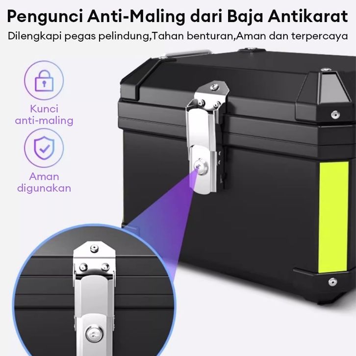 box motor belakang top box 48L kotak penyimpanan dengan lampu strip reflektif suku cadang