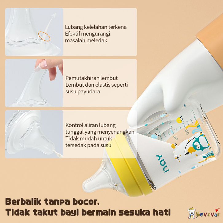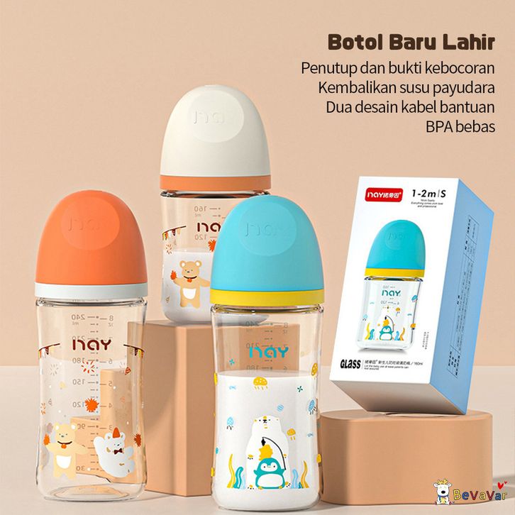 BEST SELLER BEVAVAR Botol Susu Newborn 160/240ml Botol Kaca Bayi Anti Kolik Feeding Bottle BPA Free