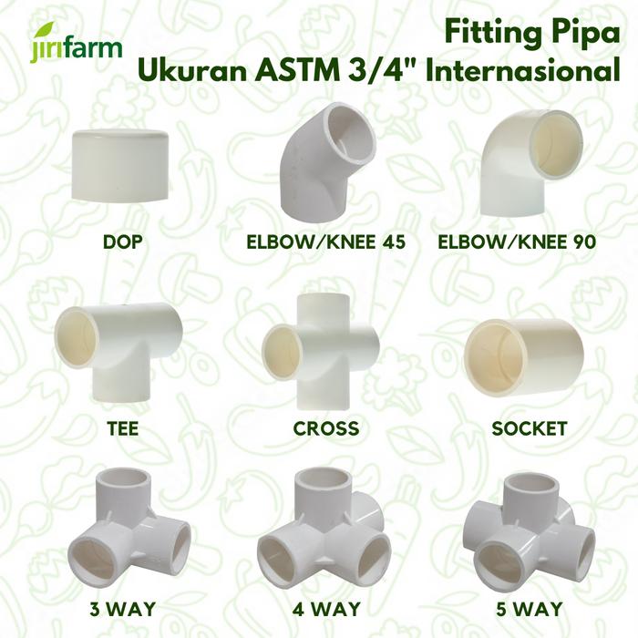 JIRIFARM - Fitting Pipa Paralon 3/4 Inch Inci Elbow 3 Way Arah 3/4" ASTM Internasional - Dop 3/4" ASTM
