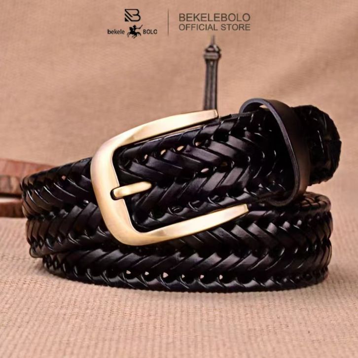 Ikat Pinggang Pria Wanita Kulit Asli BGS-573 Sabuk Pria Rajut Ikat Pinggang Kulit Asli Hand Made Black ,Brown