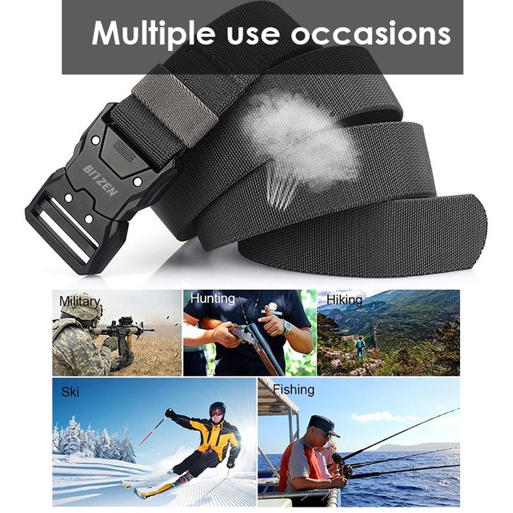 Ikat Pinggang Pria Wanita Kulit Asli Bitzen Ikat Pinggang Pria Nylon Fast Unlock Canvas Sabuk Tactical Gesper Tali Ping