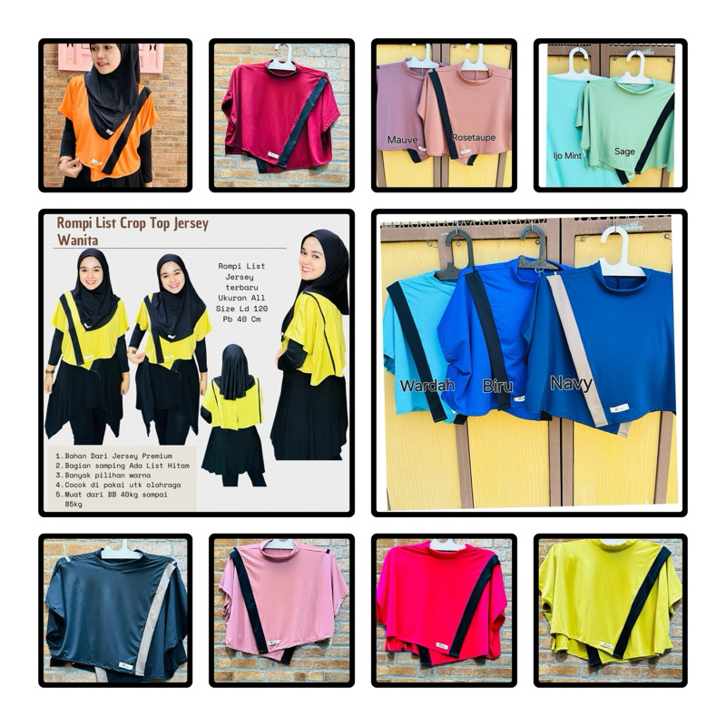 Rompi Crop Top List Hitam Wanita / Outfit Olahraga / Ukuran All Size
