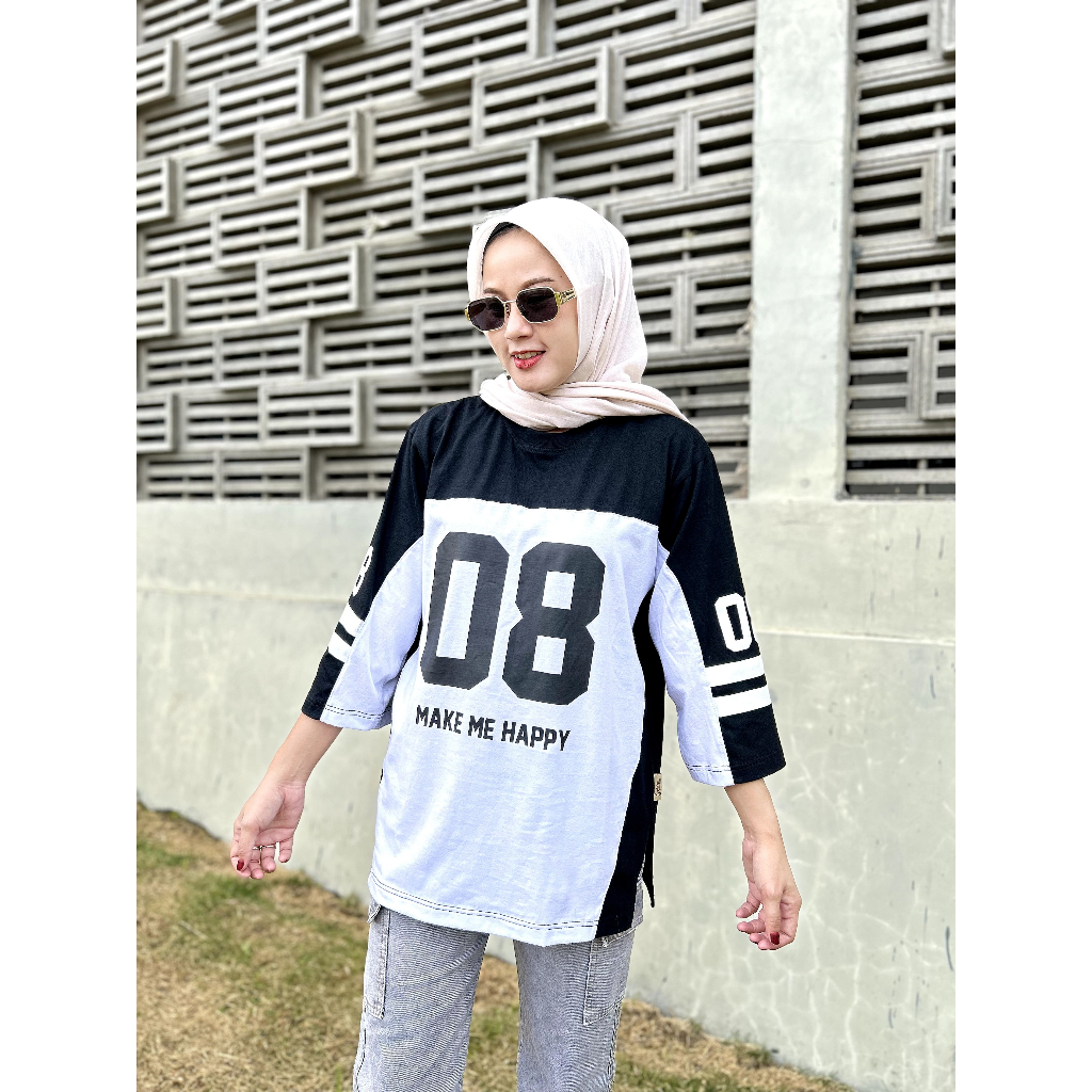 Kaos Baseball Number / Oversize LD 120 Wanita Lengan 7/8 / T-shirt Sporty Premium