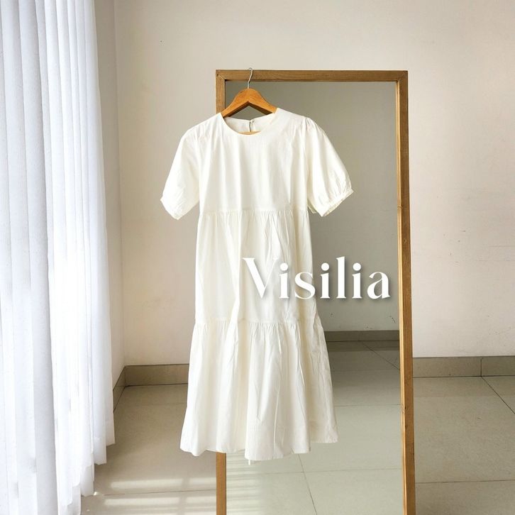 Dress Wanita Korea Maxi Kondangan Press Body VISILIA Cinderella Dress | Korean Midi Babydoll Dres Warna Fuschia Pink Ba