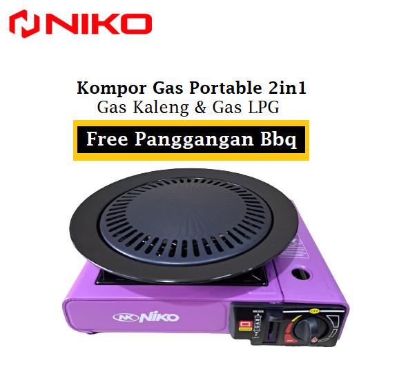 Kompor Gas Portable Niko Free Panggangan Plat BBQ Kompor Gas Portable 2in1