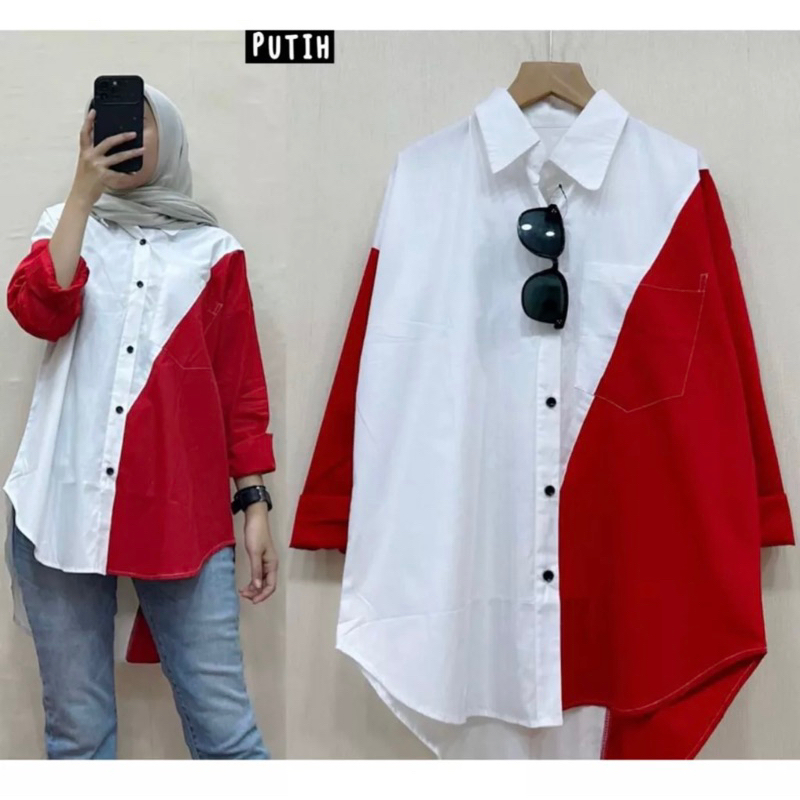 kemeja merah putih 17 Agustus bahan cotton adem jatuh/ukuran-S,M,L,XL,danJUMBOXXL/AtasanMerahPutih/BlouseKemerdekaan/BAJU KEMERDEKAAN/