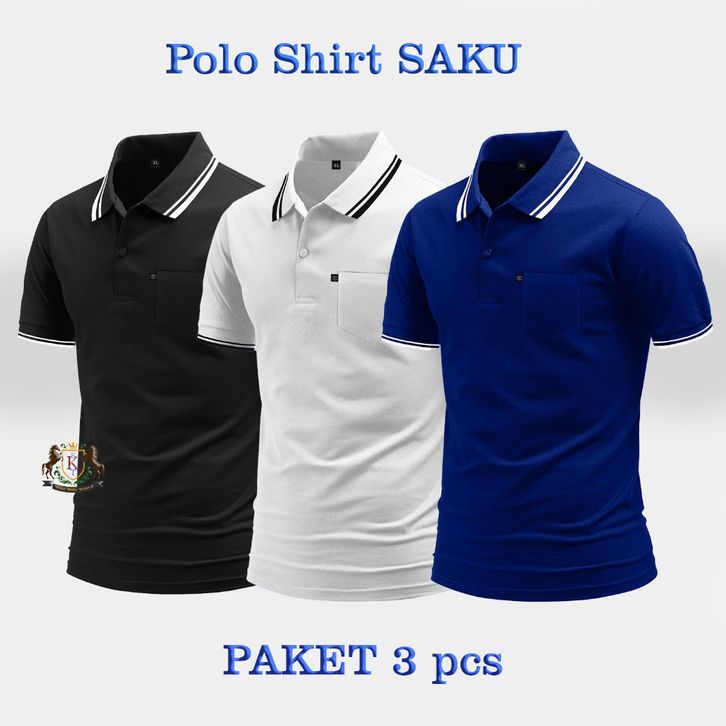 BKT Paket 3 pcs Polo Shirt SAKU Kaos Polos Atasan Pria Lengan Pendek