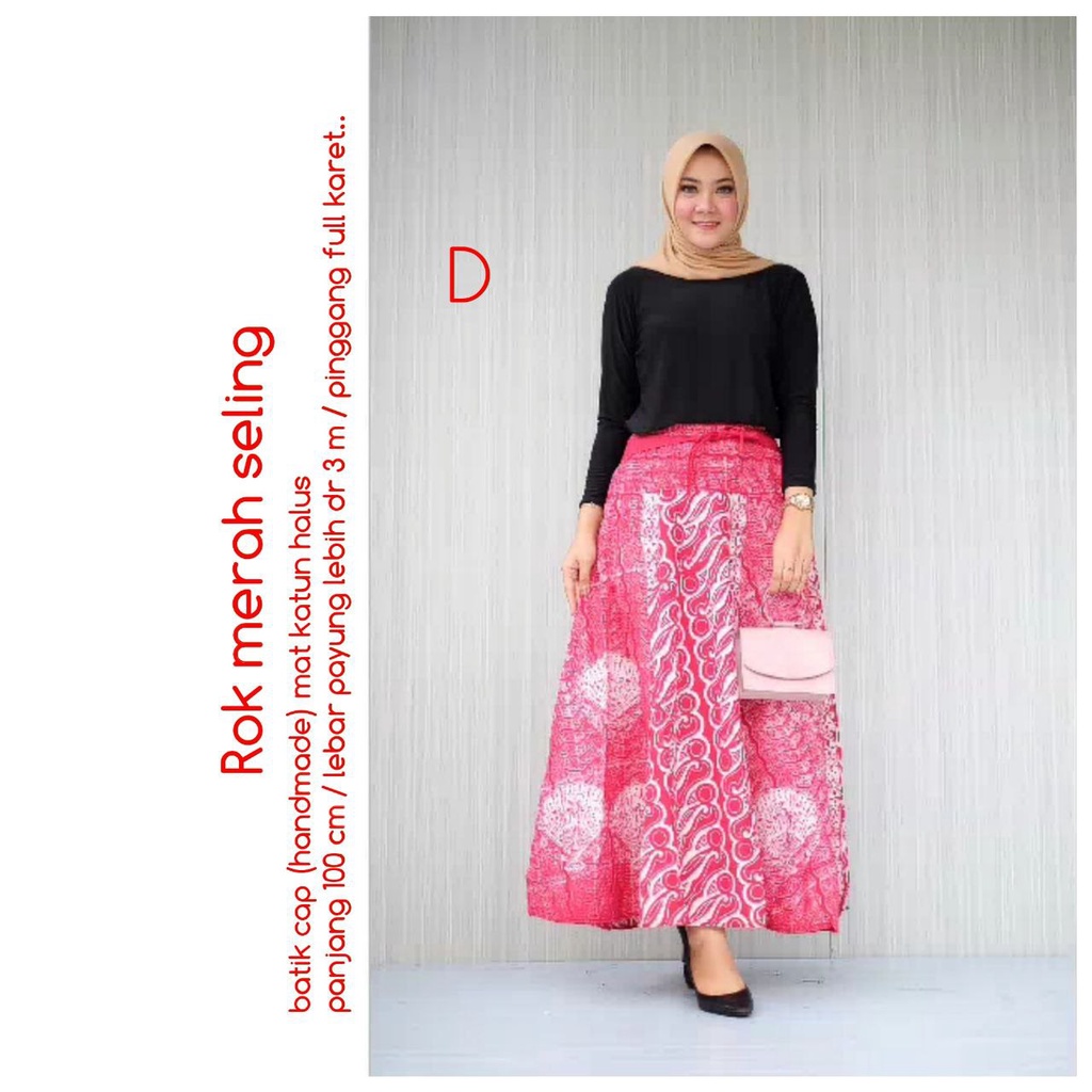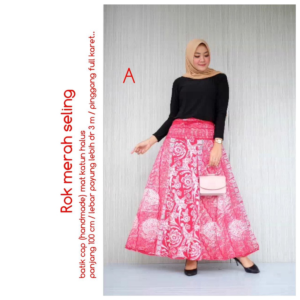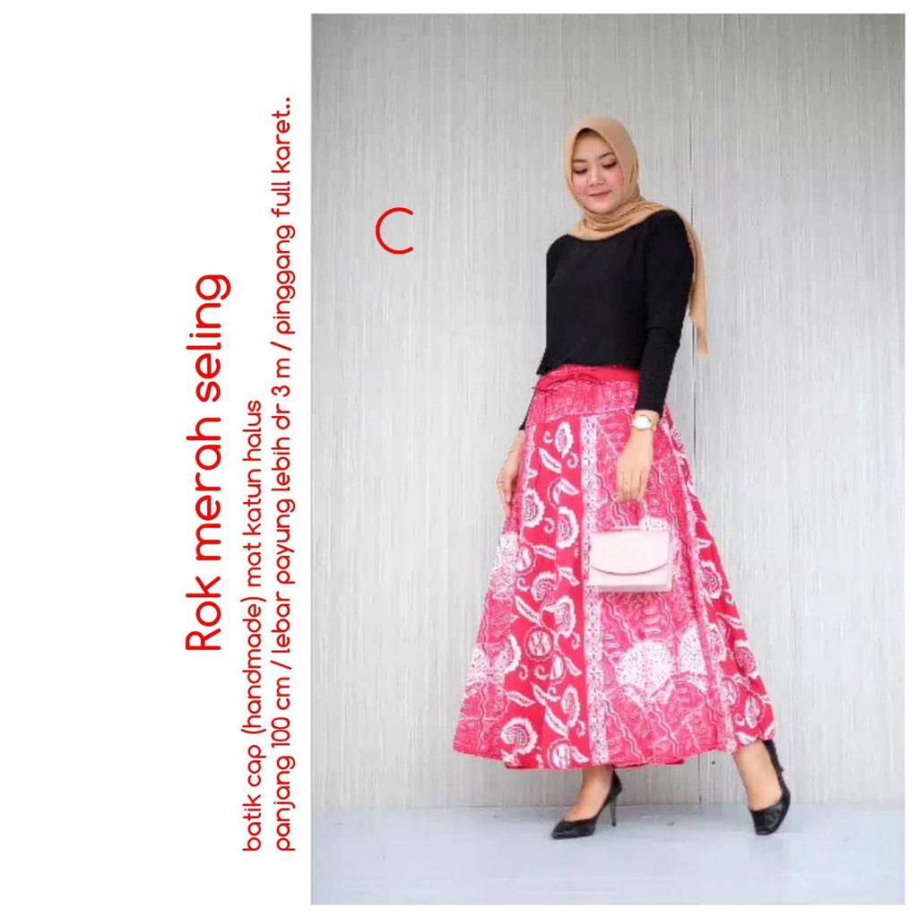 ROK CAP SELING MERAH DELIMA BAWAHAN BATIK KANTORAN WANITA CASUAL FORMAL KONDANGAN KATUN PREMIUM