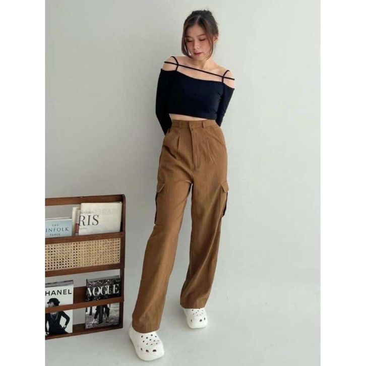(Gratis Ongkir) Celana Cargo Wanita Highwaist Premium Kulot Cargo Pants Wanita Korean Style