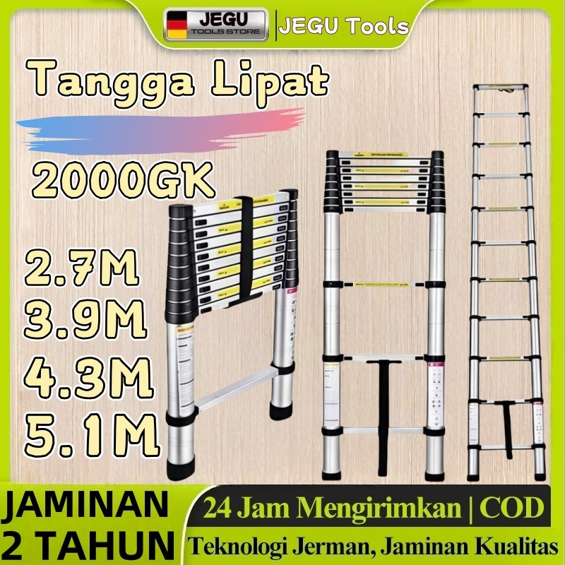 Tangga Lipat/Aluminium Portabel Tangga Teleskopik 2.7/3.9/4.3/5.1M Telescopic Ladder Tangga Lurus