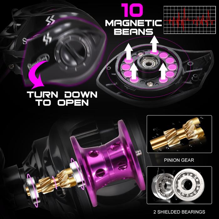 Sougayilang BC Reel Pancing, 18+1BB, Rasio Gir 7.2:1, Dilengkapi Rem Magnetik 0-9, Cocok untuk Pemula dan Alat Pancing A