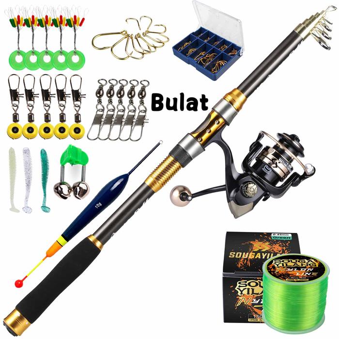 Set Alat Pancing Sougayilang, Joran Pancing Teleskopik dengan Reel Pancing Berputar Seri 1000-4000, Tali Pancing Nilon 1
