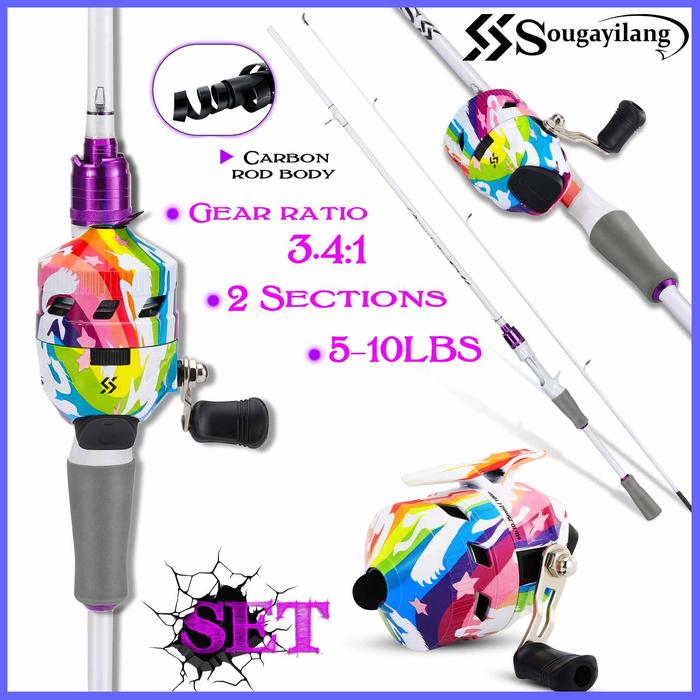 Sougayilang Joran Pancing dan Reel Combo, Joran Pancing Fleksibel UL 2 Bagian 1,8M dengan Reel Pancing Pegangan Kanan Pu