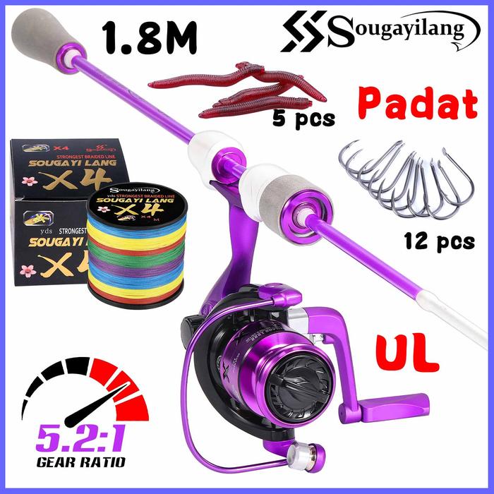 Set Peralatan Memancing Sougayilang, Joran Pancing Solid UL Fleksibel 1,8M dengan Rasio Gigi 5.2:1 Reel Pancing Berputar