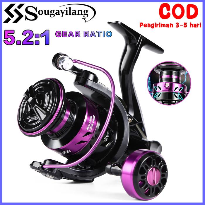 Sougayilang Reel Pancing, 2 Warna Rasio Gear 5.2:1 Reel Pancing Putar dengan Kumparan Aluminium CNC Ultra Ringan untuk M