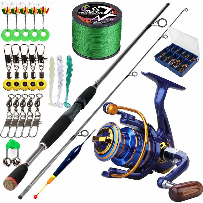 Sougayilang Fishing Set Lengkap 2 Bagian 1.8M Spinning Fishing Rod dan 12BB Gear Ratio 5.2:1 Spinning Reel dengan 100M P