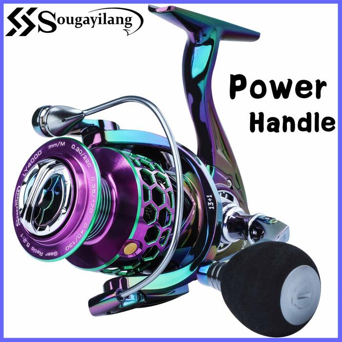 Sougayilang Spinning Reel, 13+1BB Super Smooth Ringan Spinner Reel dengan Power Handle dan CNC Line Management Graphite