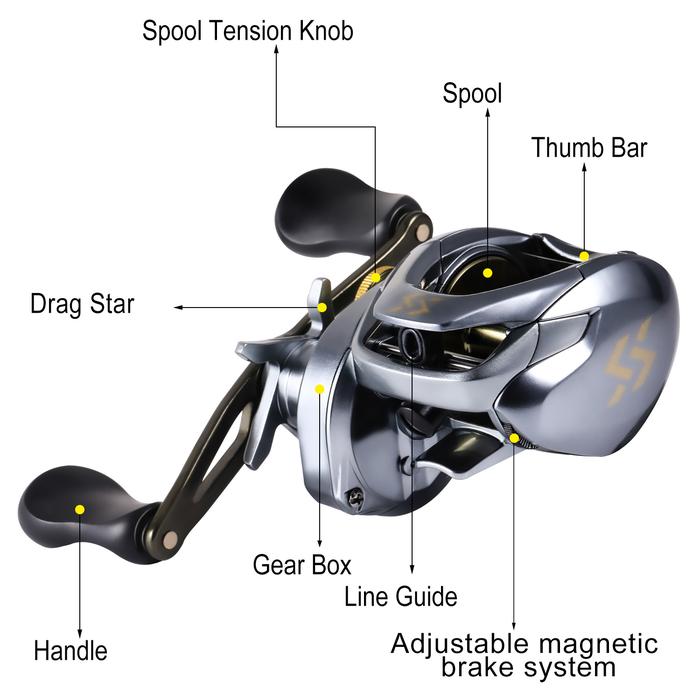 Sougayilang Reel Pancing Baitcasting, 11+1BB, Rasio Gir 7.6:1 Reel Pancing Ultra Halus untuk Bepergian di Air Asin, Air