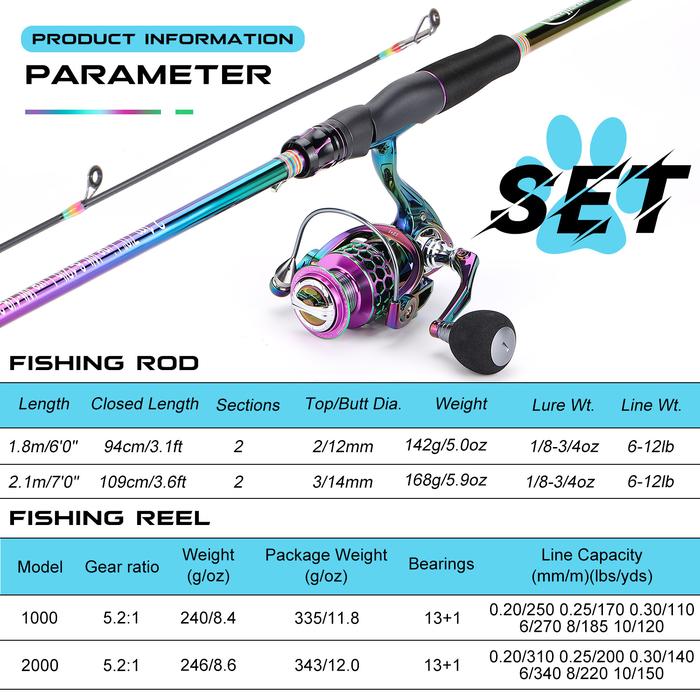 Sougayilang Spinning Fishing Reel Rod Combo, Dua Bagian Joran Pancing Portabel Berwarna-warni Ringan dengan Peralatan Me