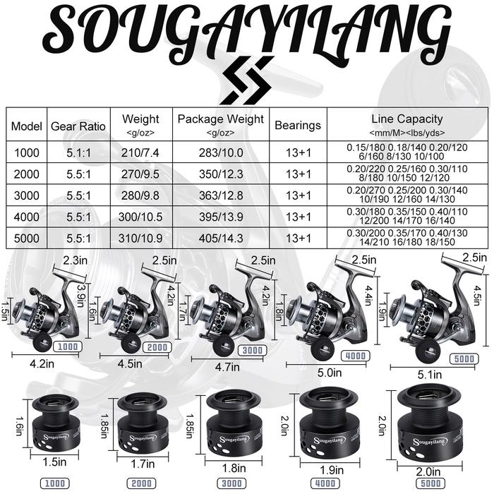 Sougayilang Reel Pancing 13 + 1BB Reel Pancing Putar Aluminium Ultra Halus Ringan dengan Kumparan Grafit Cadangan Gratis