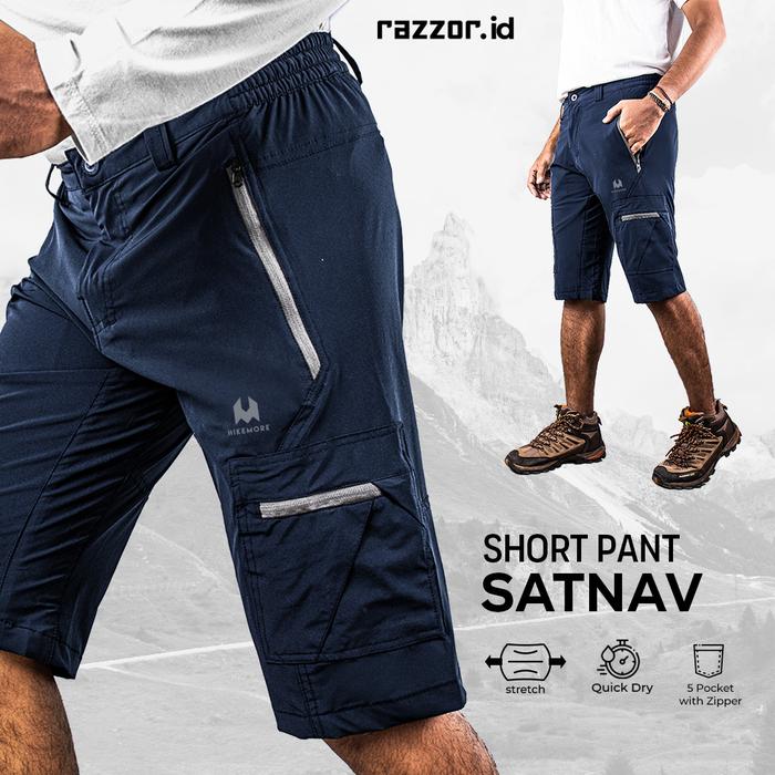 Celana Pendek Pria Wanita Gunung Outdoor Quick Dry Hikemore Satnav Ori - Hm Black, S