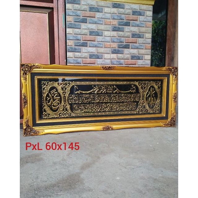 KALIGRAFI ayat kursi ,asma husna dan seribu dinnar super premium nerkualitas ukuran 60x145 FREE PECKING KAYU SAFETY