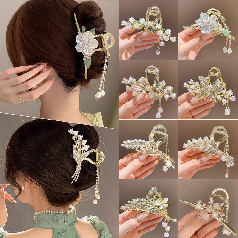 Jepit Rambut Korea Motif Bunga Kupu Kupu Rumbai Mutiara Wanita Jedai Aksesoris Fashion ASW JPT30