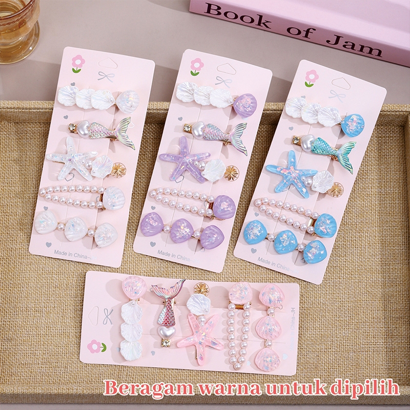 Calla Jepit Rambut Wanita Korea Retro Mutiara / Jepit Rambut Cangkang Bintang Laut Lucu 5 Pcs / Fashion Hair Clip
